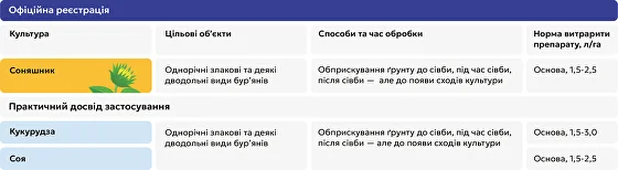 | Соняшник | Однорічні злакові та деякі дводольні | 2.0–3.0 | Досходово, до посіву |